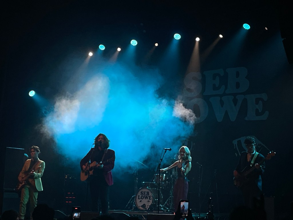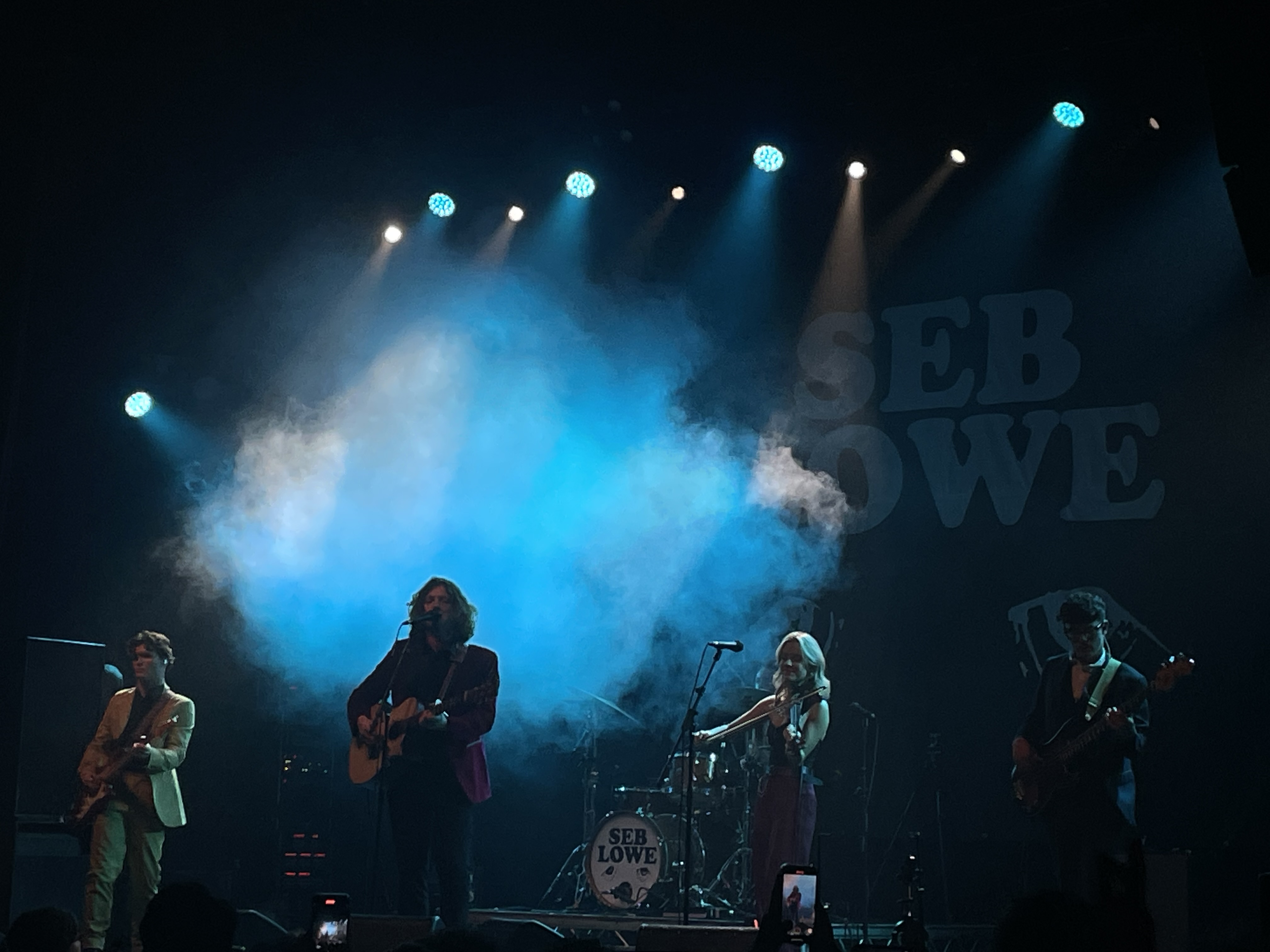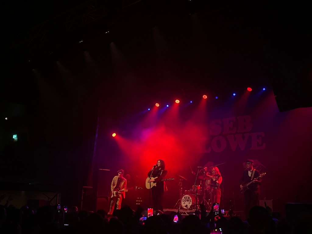 The suspense was ever-growing inside the venue, which was quickly extinguished when Seb Lowe and his band walked on to The Apprentice theme tune, all donned in inflatable crowns, which later got chucked into the audience. Accompanied by his fellow band members, Kate Couriel on violin, Sam Summer playing the bass, Ben Etches leading guitar, and Joel Goodwin behind the drums, who were all kitted head to toe in suits and shirts. It was almost as if they had stumbled out of The Midland onto the stage, but there was no mistake that they belonged there, as the performance they were about to deliver verged on a masterpiece.